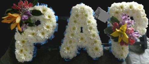 Sent from the closely bereaved the most popular names to be spelt in flowers for funerals are Mum, Dad, Nan, Grandad,