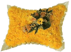 MASSED FLOWER BASED CUSHION/PILLOW with SEASONAL FLOWER SPRAY LAUREL EDGED