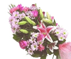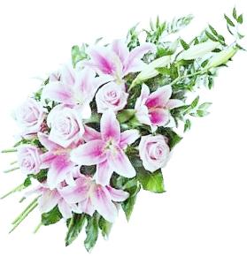 SEASONAL FLOWER SHEAF incorporating LILIES and ROSES Ref. SF2